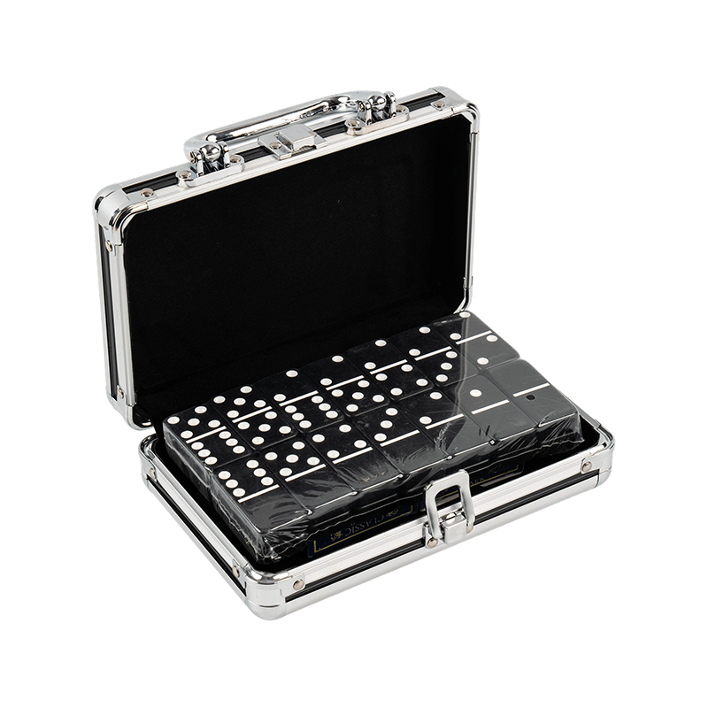 Dominó doble 6 portátil en caja de aluminio Dominó doble 6 portátil en caja de aluminio Dominó doble 6 portátil en caja de aluminio