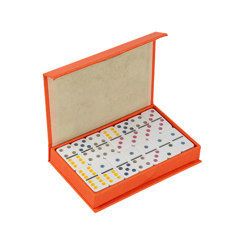 Dominó doble 6 naranja en caja de cartón Costumbre