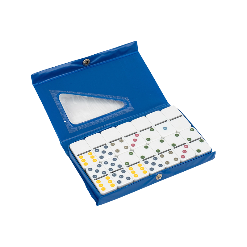Cada ficha está hecha de material PVC duradero, con fuerte resistencia a caídas y desgaste, asegurando que no se dañe fácilmente tras uso prolongado. Las fichas tienen puntos claros y logos numéricos visibles para una identificación rápida. Para facilitar el almacenamiento y transporte, este dominó viene con una caja de vinilo azul de diseño sencillo y buena protección. La caja no solo protege eficazmente las fichas, sino que también es portátil, ideal para llevársela a cualquier lugar para una partida intensa.