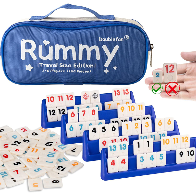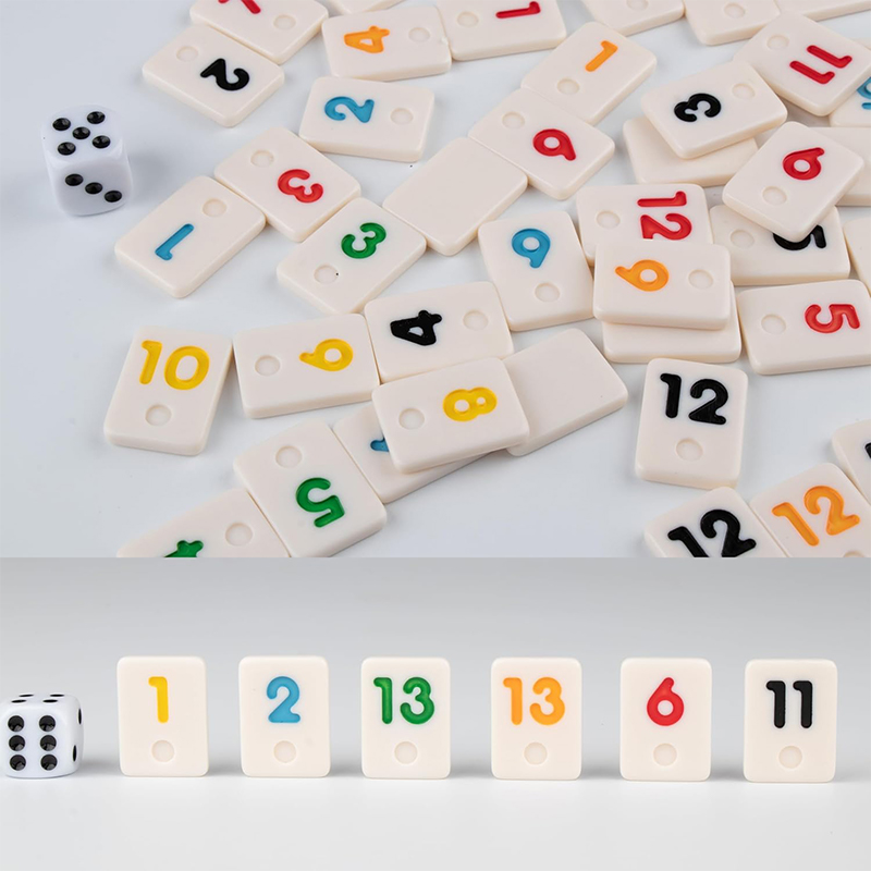 El juego de juegos de cartas de número mini rummy es un juego de mesa portátil adecuado para 2 a 6 personas. Combina el juego rummy tradicional con un diseño liviano. Todo el conjunto de juegos contiene 160 pequeñas tarjetas de número con clasificación de color clara e impresión de números claros, lo cual es conveniente para que los jugadores identifiquen y hagan rápidamente combinaciones estratégicas. Los bloques de tarjetas son de tamaño moderado, espacio de ahorro y fácil de iniciar el juego en una mesa limitada o un entorno al aire libre.